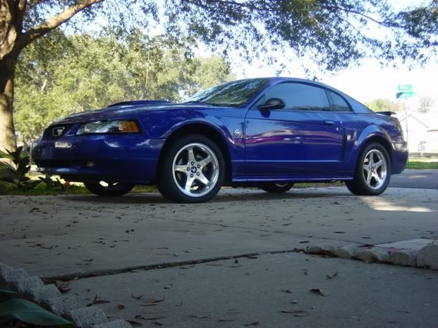 I have 4 rims off my 04 GT (same as 01 cobra) polished with a pair of 275/45/17 nitto 555Rs out back and 245/45/17 up front. Fronts have about 90% tread and rears prolly have about 80%